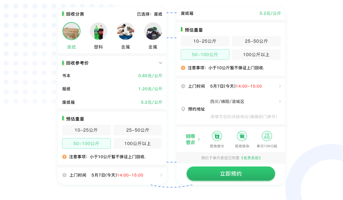 用戶一鍵下單回收,系統(tǒng)自動(dòng)派單,回收員上門回收